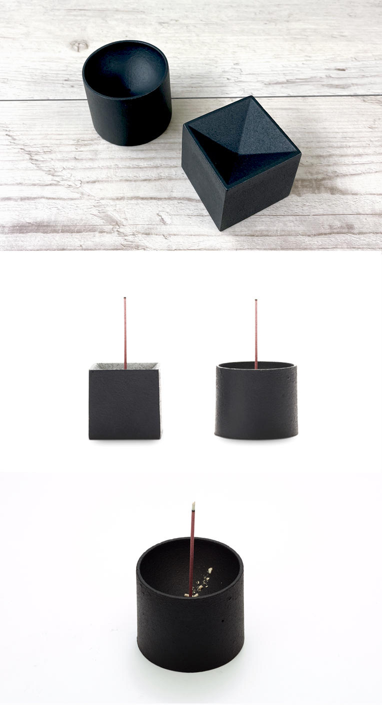 ミニマルな形ながらも、用途やお部屋の広さに合わせて2種類のお香を使い分けることができる2wayタイプのお香立です。